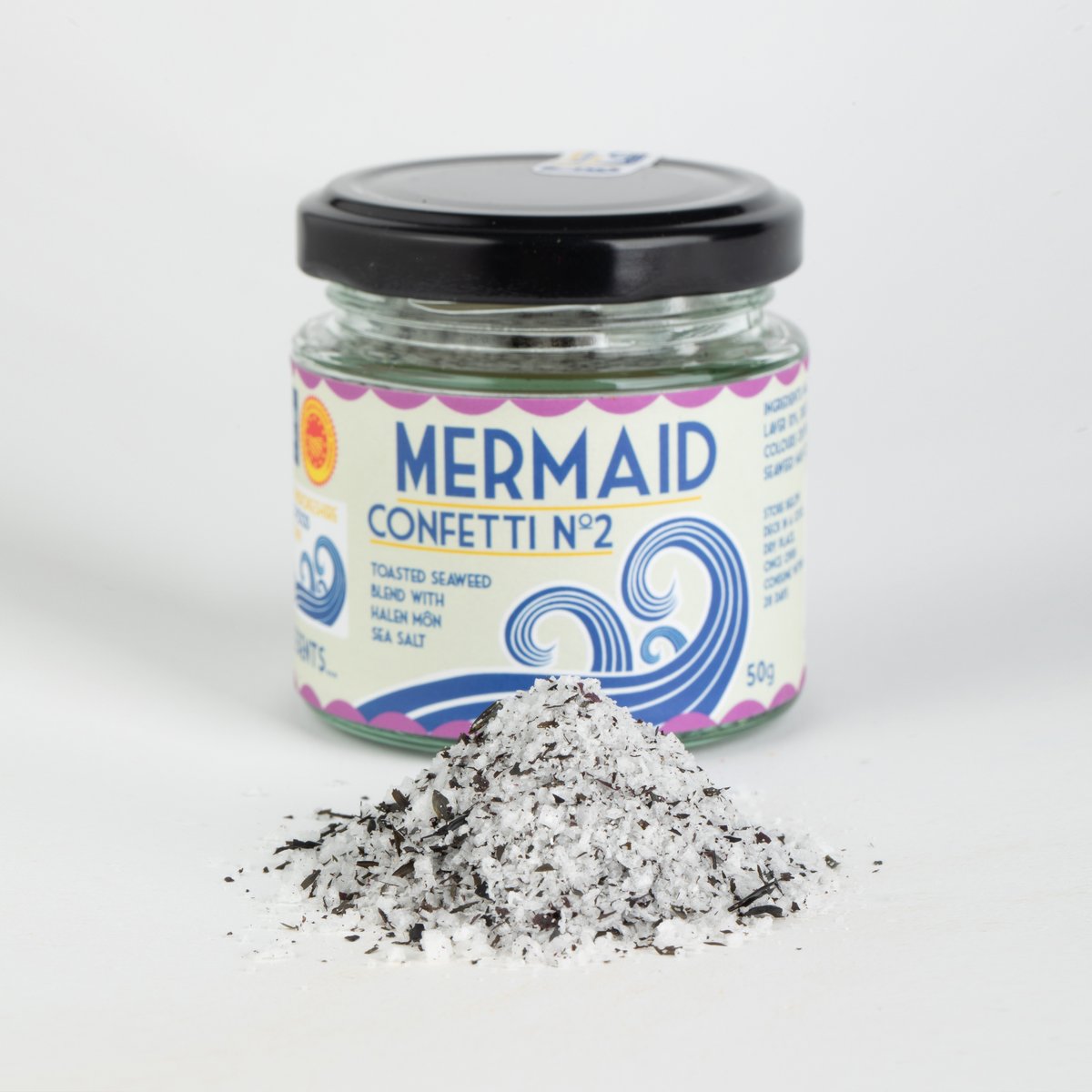 Mermaid Confetti NUMBER 2 is the perfect blend of our dried toasted laver seaweed (Welshman’s Caviar) with Halen Mon Sea Salt (PDO) crystals and dried dulse seaweed creating an extraordinary seasoning which will add a new level of flavour to any dish.