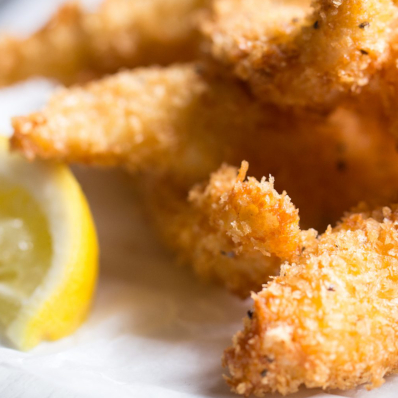 Strip of succulent whit fish fillet, coated in flour, eggs and panko breadcrumbs